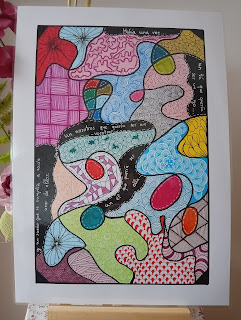 Os enseño mis "versos encuadrados": láminas en a4 o a3 (grosor 300 gramos, plastificadas) con mis poemas, versos, frases, etc. Están realizados a mano (por mí, obviamente), con dibujos, patrones, papeles de scrap, tintas, rotuladores, ceras... Otra manera de enseñar mis letras y un bonito detalle para decorar y/o regalar.